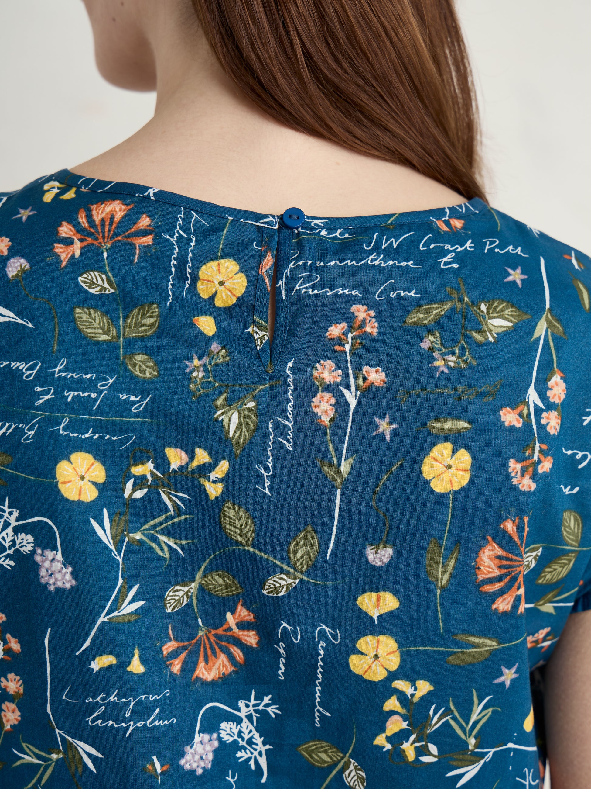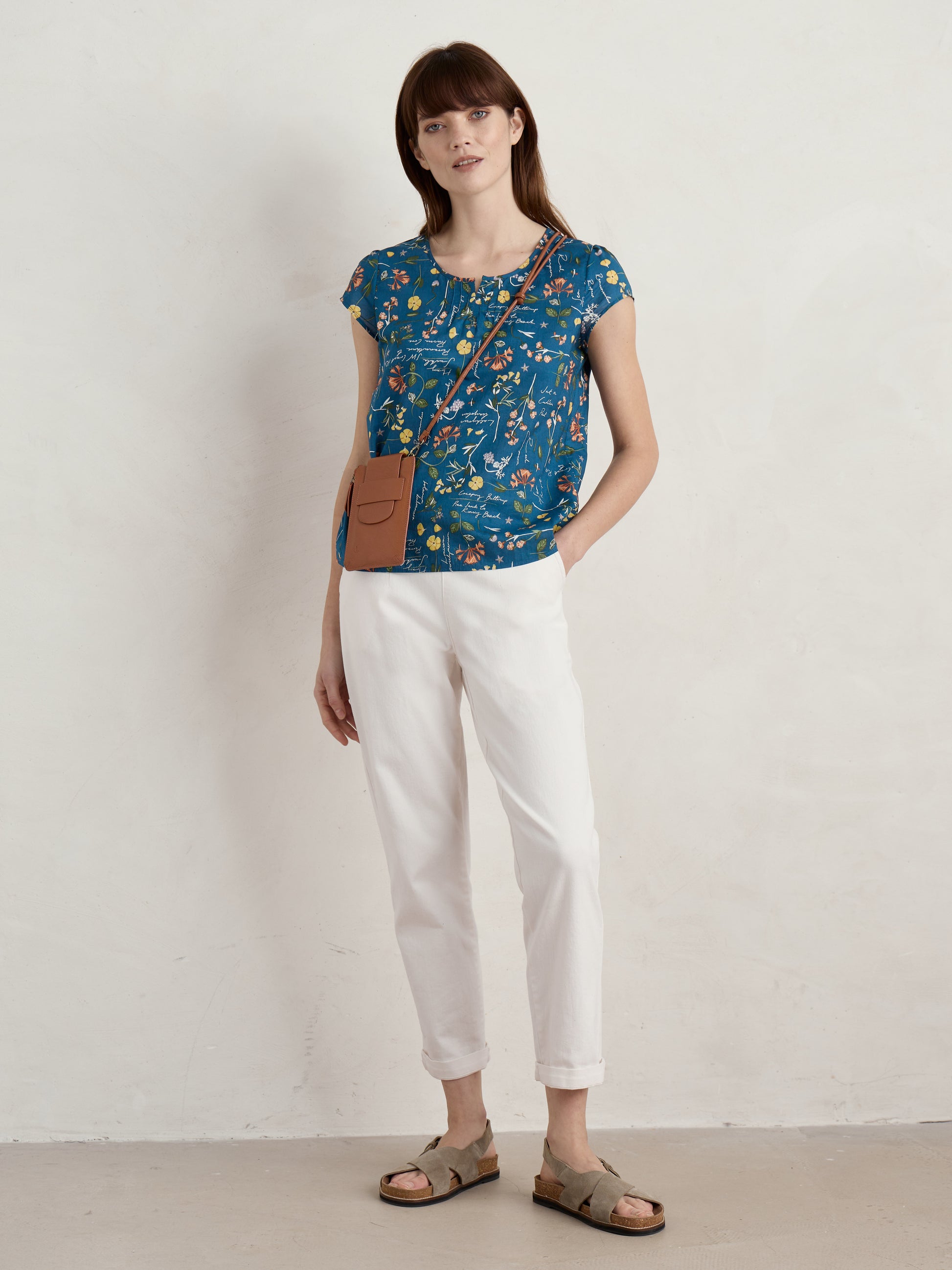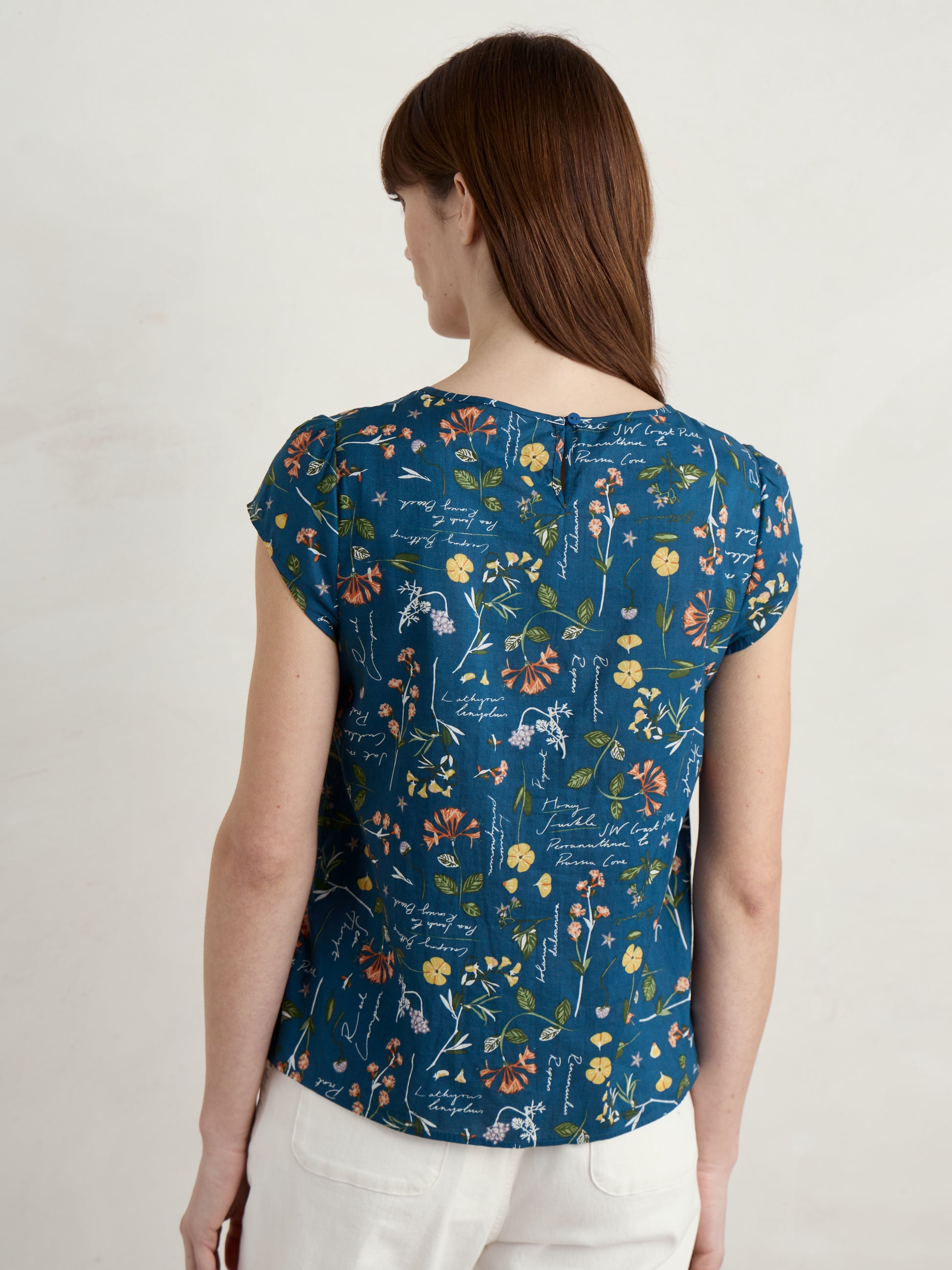 An adorable top crafted from lightweight, breathable cotton voile. Our Garden Gate top features a semi-fitted silhouette, complete with a scoop neckline and charming cap sleeves. Delicate gathers on the front offer subtle shaping, while a keyhole opening with button loop closure adds a finishing touch to the back.