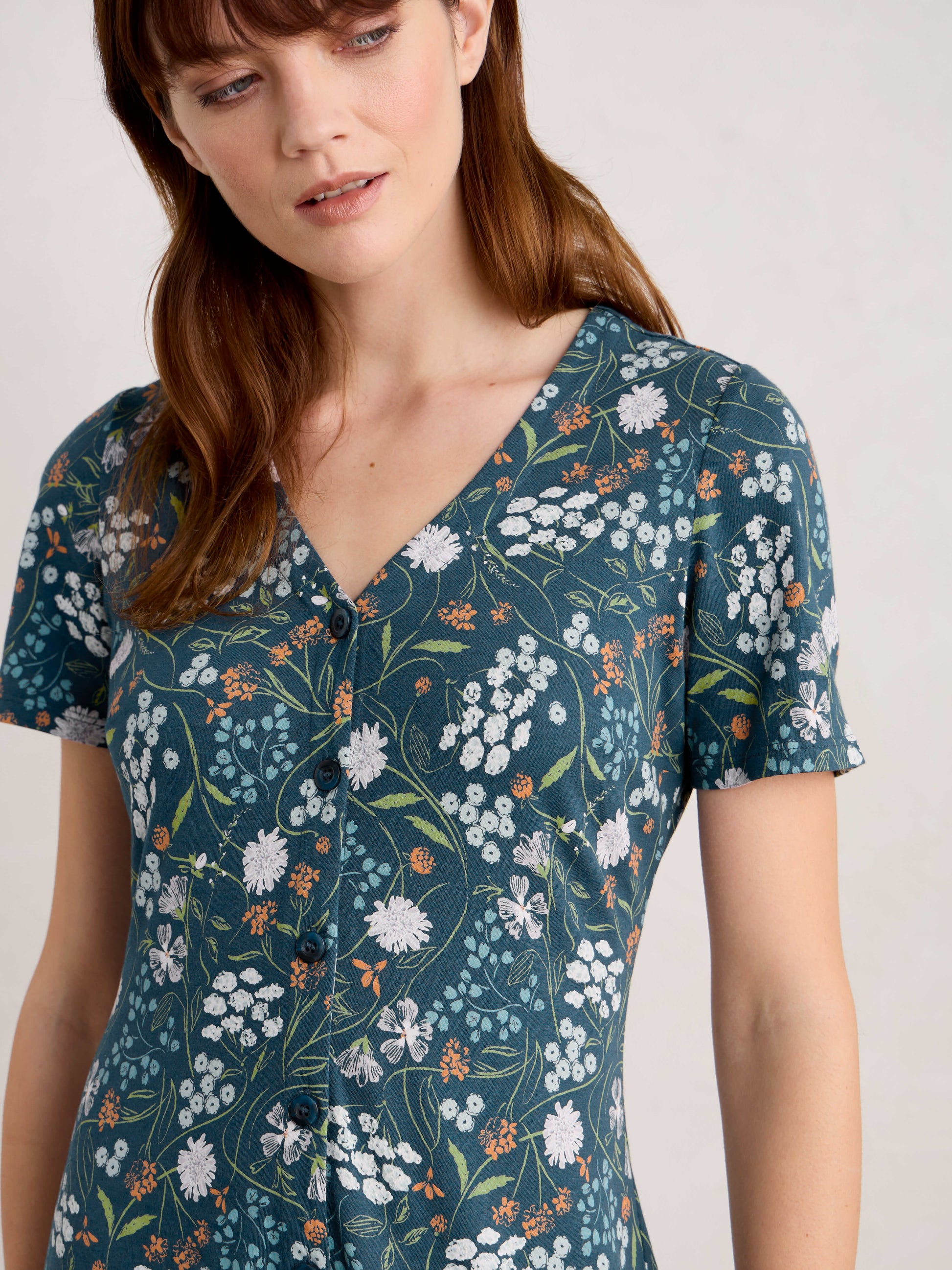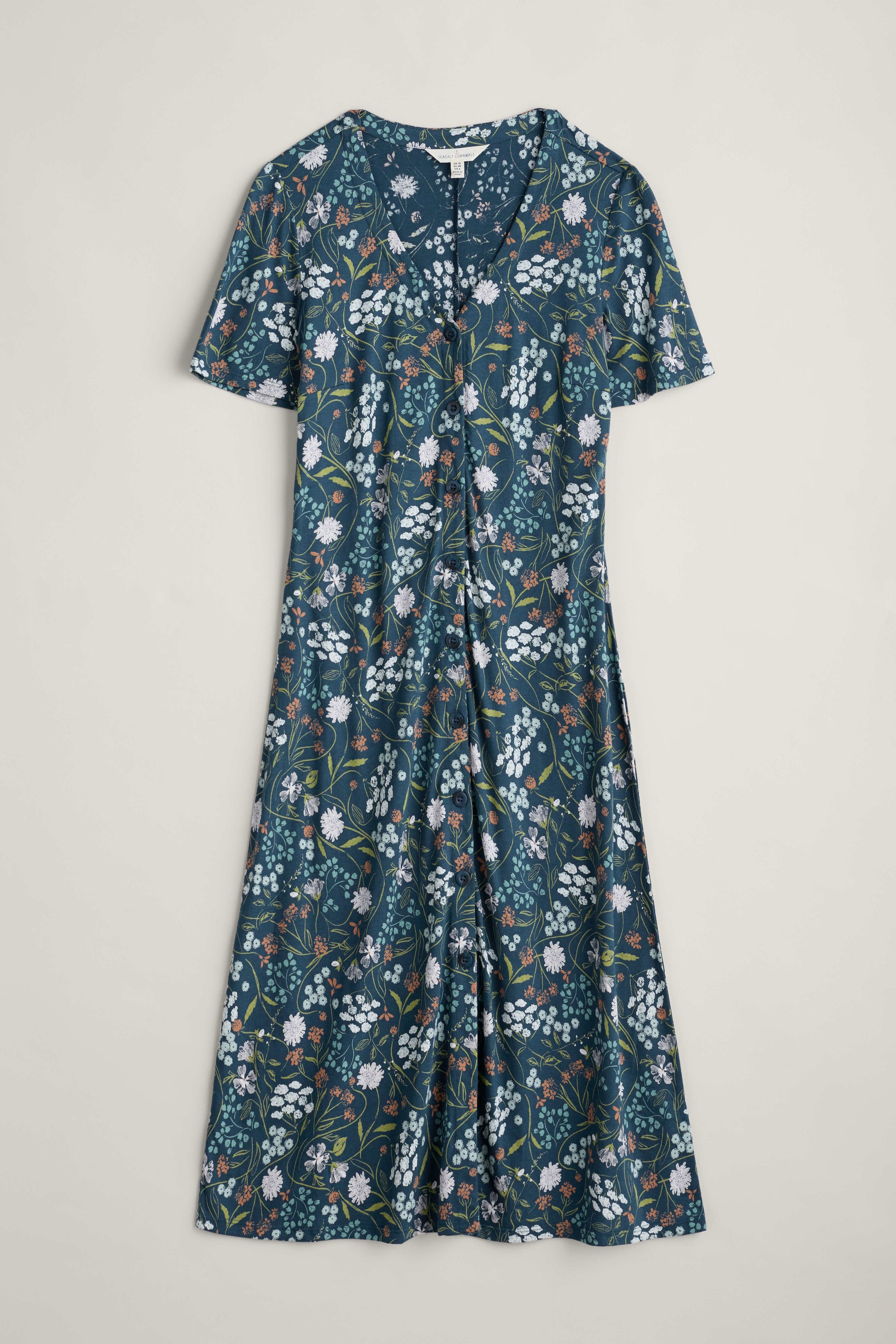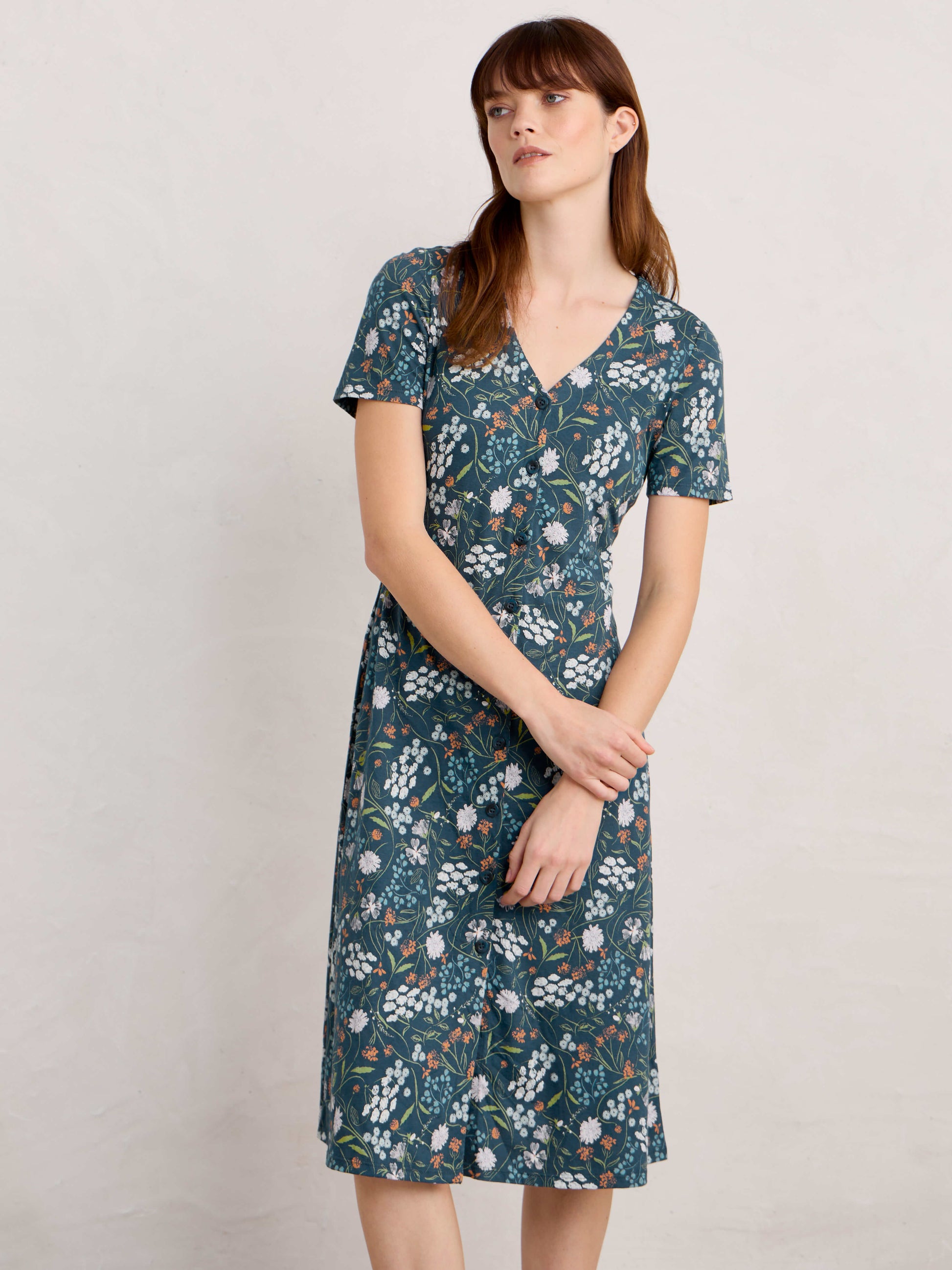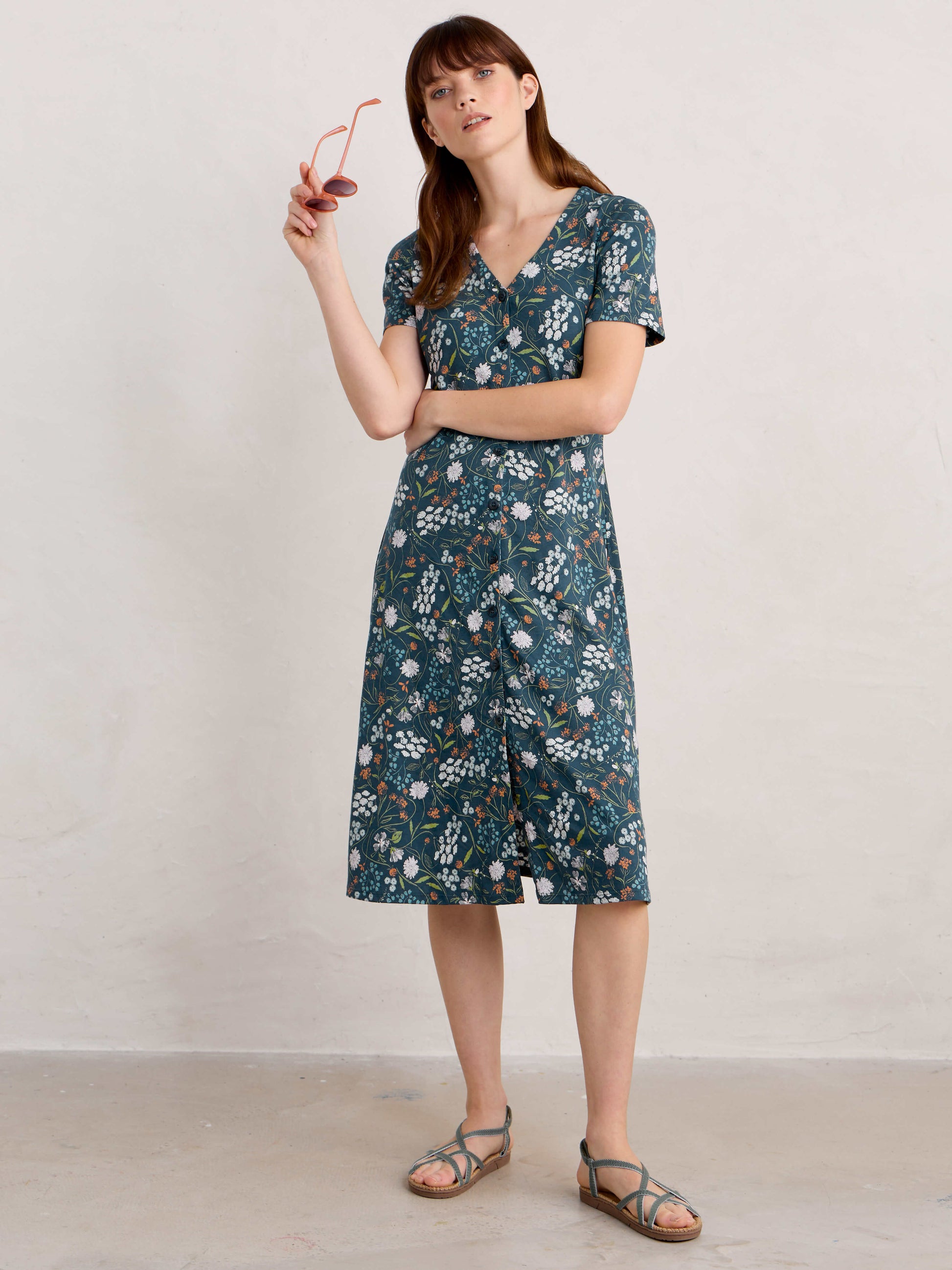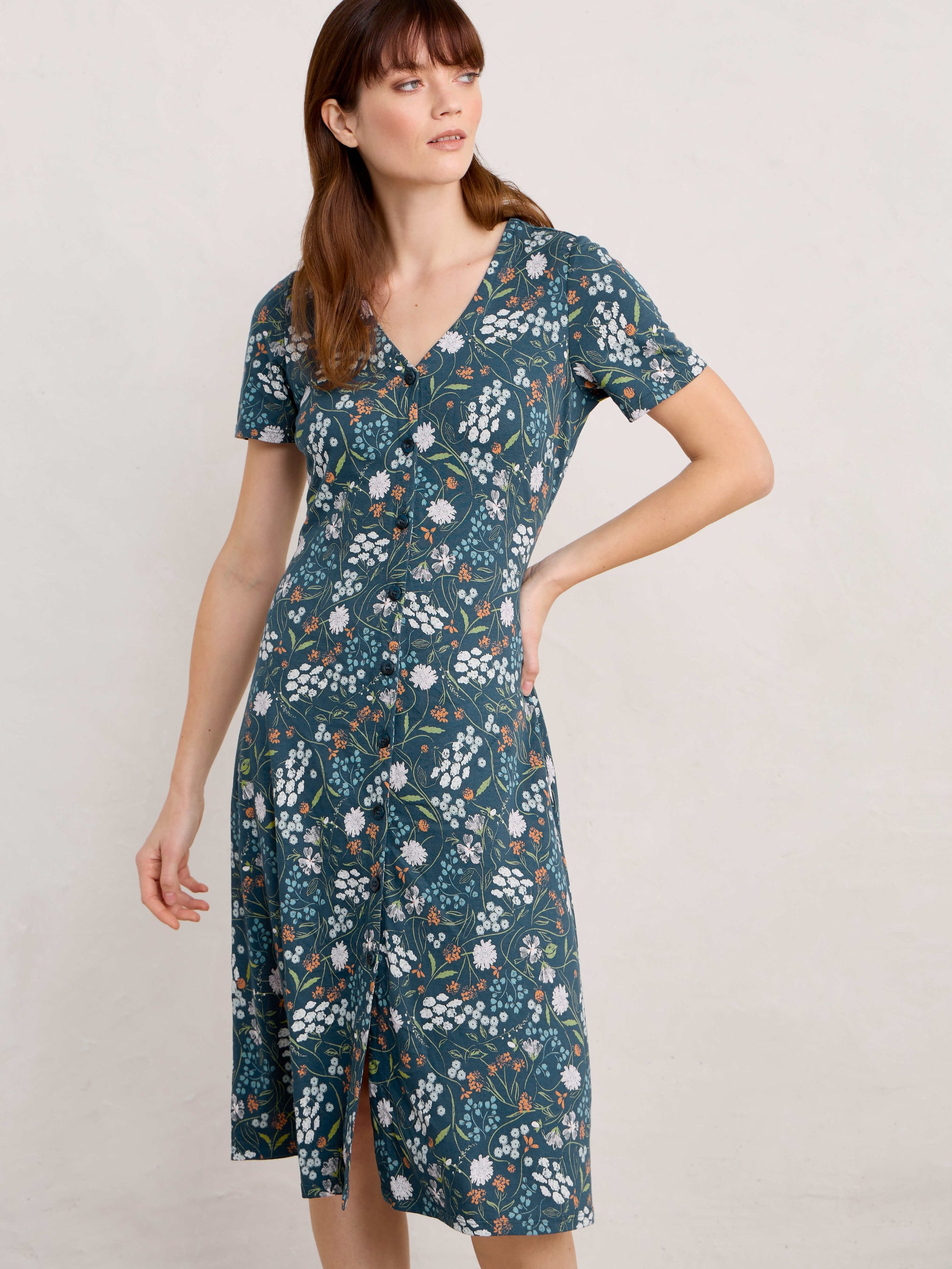 Introducing a classic summer tea dress, now offered in our updated and enhanced fit. The Lilian is meticulously crafted to be cherished and worn for seasons ahead, featuring a button-through front, tailored silhouette, and gentle V neckline. Crafted from a luxurious blend of organic cotton and TENCEL™ Modal, its A-line skirt drapes beautifully while our prints sway gracefully with movement.